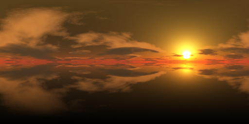Panorama (spherically mapped / equirectangular) skyboxes have all been rendered at 2048x1024.